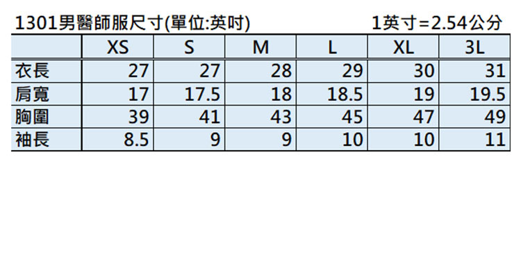 立領醫師服,白色,前開釦,右側排釦設計,左胸口及下擺兩側口袋設計,平織布