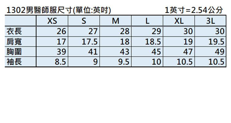 國領半短醫師服,白色,前排四扣,左胸及二側下擺口袋設計