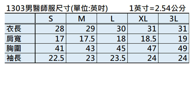 男西裝領醫師服,白色,前排二扣,左胸及下擺二側口袋設計